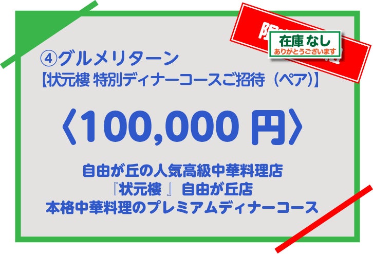 【状元樓 特別ディナーコースご招待(ペア)】 限定:3組
