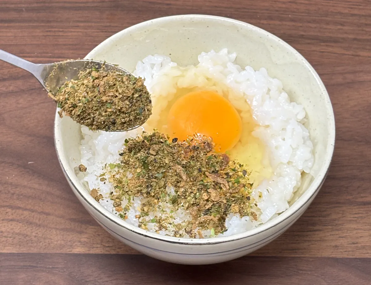 一般的なふりかけのようにパラパラと少量をかけるだけだと、少し物足りなく感じるかもしれません。おいしく召し上がっていただくには、ご飯が覆われるくらい、たっぷりかけてください。