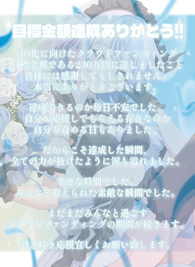 「葵井詩雫の3D化は、ファンのみんなと一緒に叶えたんだ!」という、特別な記憶にしたい。
