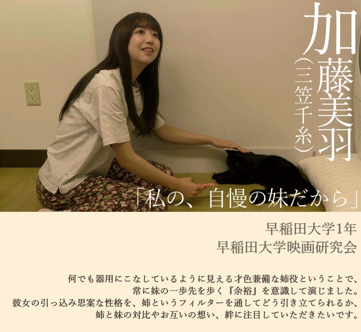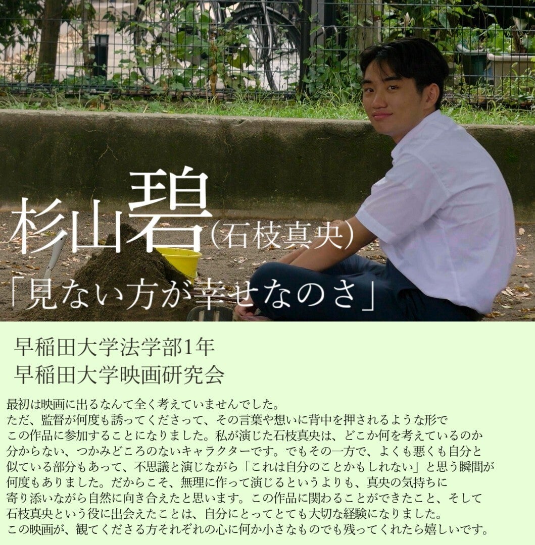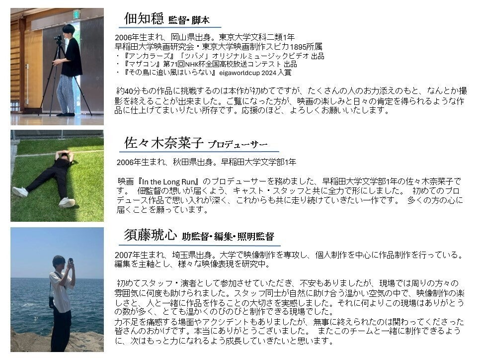 当ページをご覧いただきありがとうございます。早稲田大学映画研究会・東京大学映画製作スピカ1895所属、監督の佃知穏と申します。