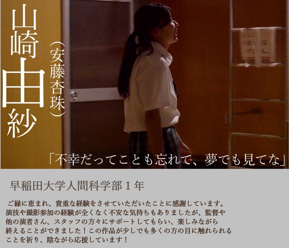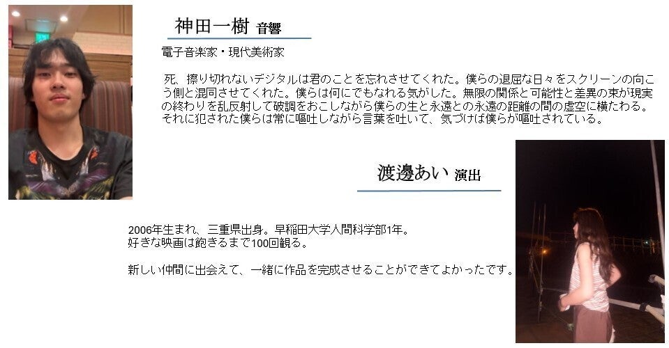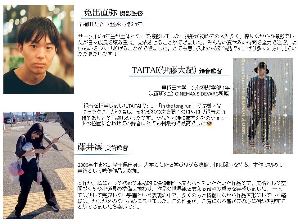 当ページをご覧いただきありがとうございます。早稲田大学映画研究会・東京大学映画製作スピカ1895所属、監督の佃知穏と申します。