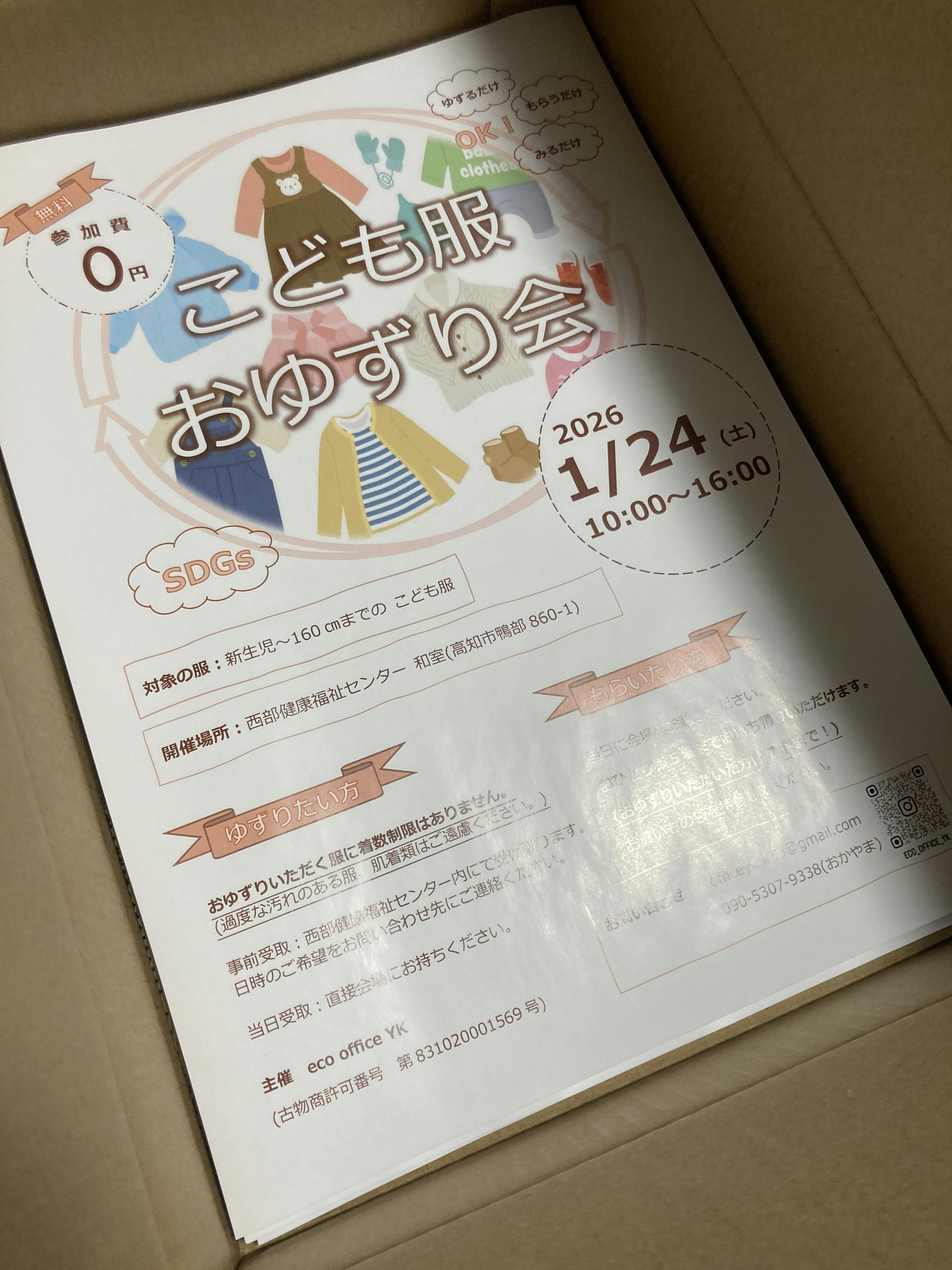 2026年1月24日に、「こども服おゆずり会」を主催します。