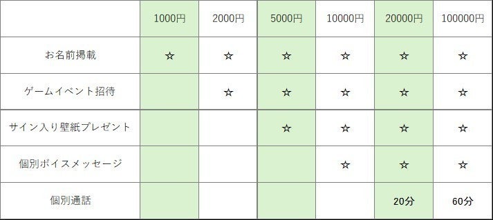 ◆20000円プラン◆ 【個別通話】 蘭符から支援してくださったあなたと個別通話をします ・日程:未定(約20分) ・場所:蘭符特設discordサーバー ・クラウドファンディング終了後、リンクなど詳細情報をメールにてご案内します。 +下位プラン 【個別ボイスメッセージ】 蘭符から支援してくださったあなたに個別ボイスメッセージを送ります ・日程:Live2Dお披露目後順次送付 ・ボイスの長さ:約2分 ・提供方法:メールにURLを記載します。 【サイン入り壁紙提供】 蘭符とらんこちゃんが描かれたオリジナル壁紙をサイン入りで提供 ・サイズ3840×2160以上 ・提供方法:メールにて送付 【イベント招待】 支援者限定参加型配信にご招待します(複数回開催予定) ・日程:未定 ・ゲーム内容:APEX、雀魂、ポーカーチェイス ・場所:蘭符YouTubeチャンネル、蘭符特設discordサーバー ・クラウドファンディング終了後、リンクなど詳細情報をメールにてご案内します。 ・どのゲームに参加希望が入力をお願いいたします。 【お名前掲載】 pixivFANBOXに、支援者様のお名前(ニックネーム)を掲載します。 ・掲載期間:pixivFANBOXが存続する限り ・掲載方法:文字のみ、ロゴ/バナーの掲載は不可 ・掲載サイズ:小(1文字100px程度) ・支援時、必ず備考欄に希望されるお名前をご記入ください。