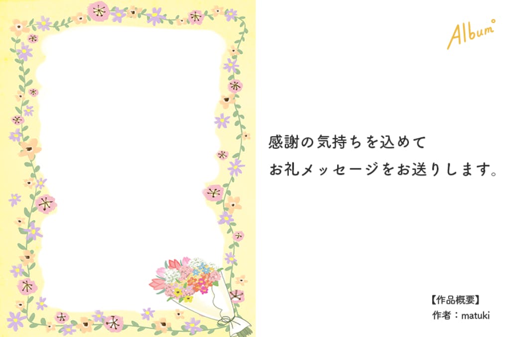 感謝の気持ちを込めて、ALBUMメンバーの便箋作品にのせて、お礼メッセージをお送りいたします。
