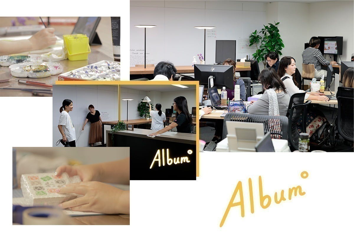 ご覧いただきありがとうございます。ALBUMです。ALBUMでは様々な個性を持つメンバーが毎日楽しく、そして一生懸命働いています。「ワンダーワールドカンパニー」に登場する「ワーカー」に似たメンバーもたくさん働いています。それぞれがその個性や特性を活かし、様々な業務や制作活動をおこなっています。
