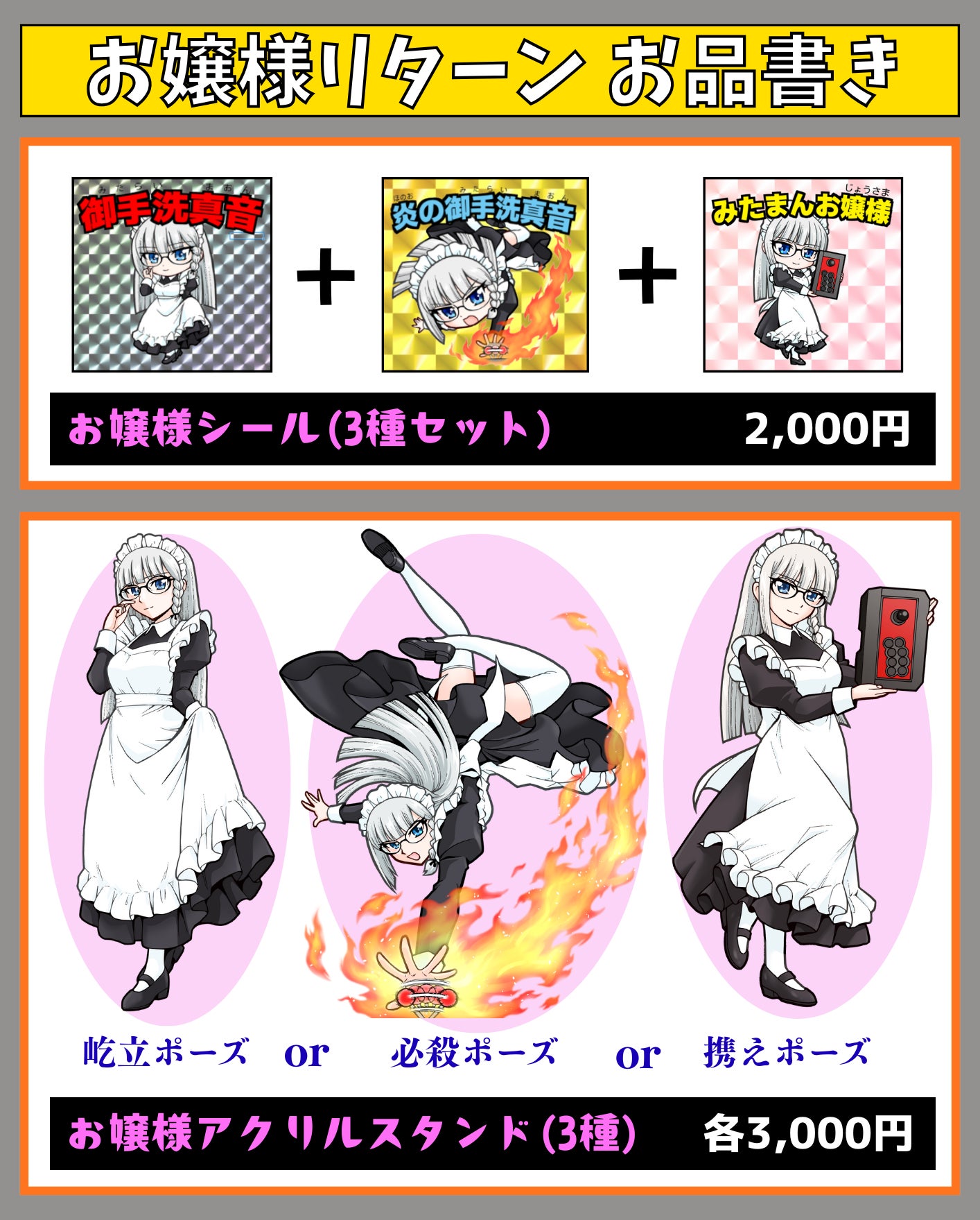 お嬢様アクリルスタンドが全3種セットになった、少々お得なコースです。