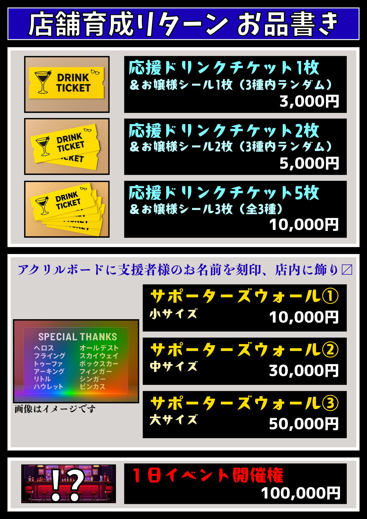 ・店舗育成サポートコース(ドリンクチケット/サポーターズウォール/イベント開催権)