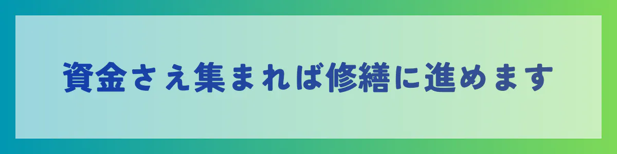 クラウドファンディングで100万円、企業等からの協賛金で200万円を集めることができたら、すぐに工事に取り掛かることができます。