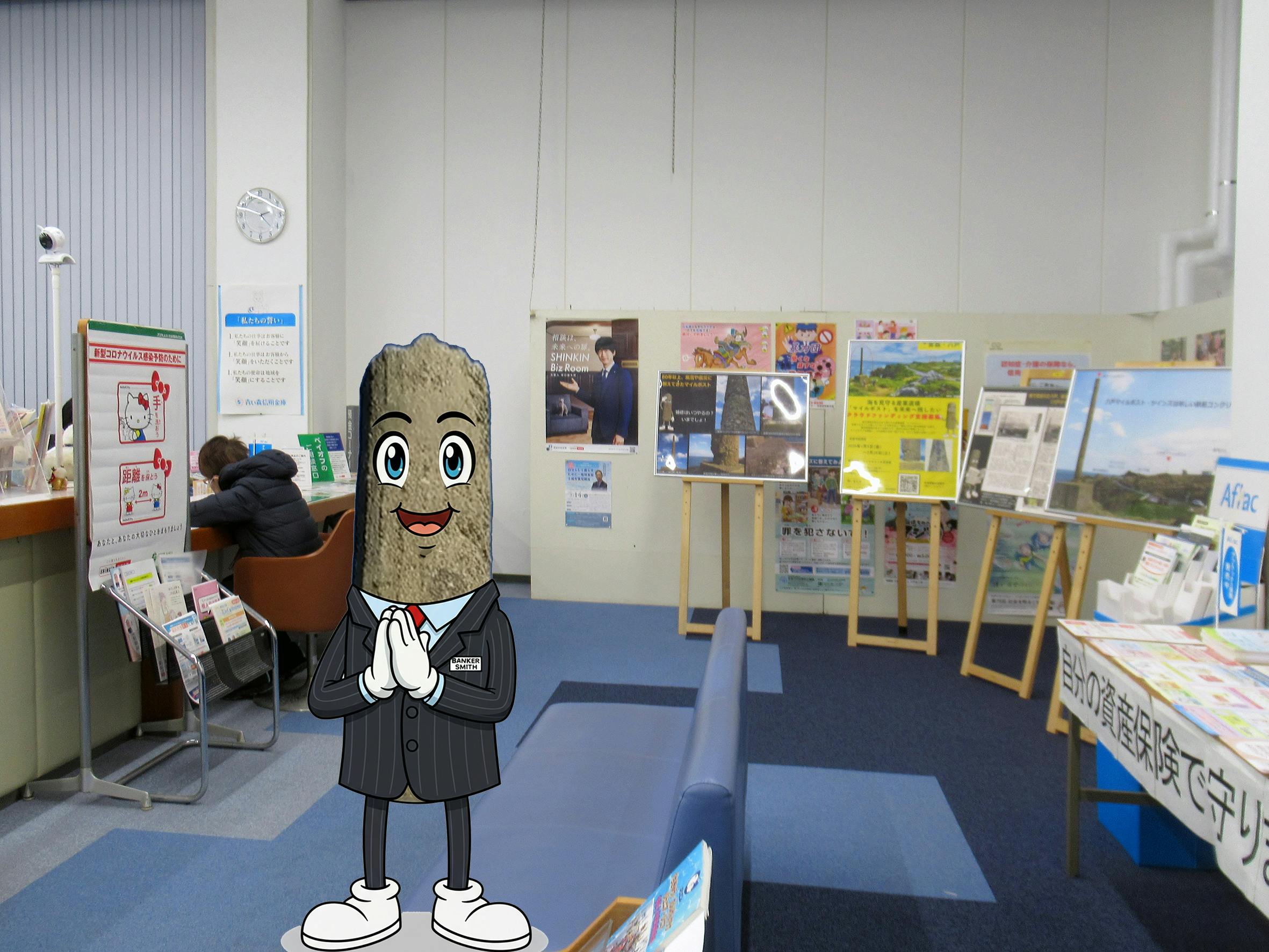 1つ目の会場は、マイルポストが佇んでいる八戸市の湊エリアにある青い森信用金庫 湊支店様です。青い森信用金庫 湊支店様の御好意で実施させて頂いており、水産科学館マリエントにて開催しました展示会に引き継ぐものです。マイルポストを御覧になった際など、お近くにおいでの際はお寄りください。