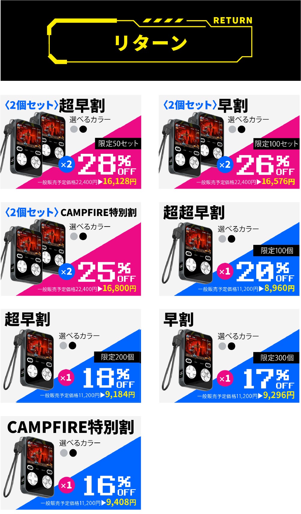 ※想定を上回る皆様からの支援により、量産体制を更に充実させることができた場合、一般販売価格が予定価格を下回る可能性がございます。
