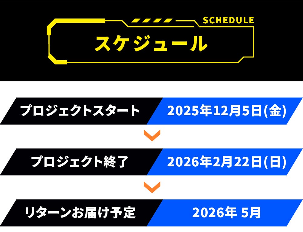 ※本文中に記載させていただいたスケジュールは、あくまでプロジェクト公開時点の予定です。クラウドファンディングの性質上、配送遅延のおそれがございます。