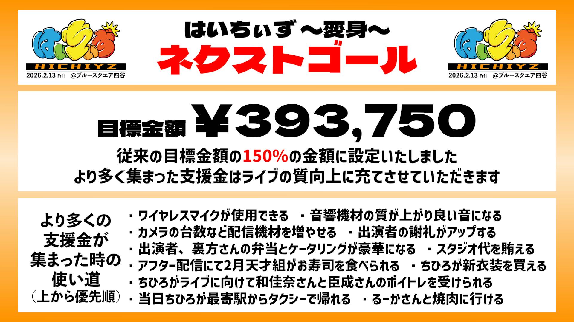 ※目標金額に到達し、より多く集まった支援金は、上記の通りライブの質の向上に充てさせていただきます。