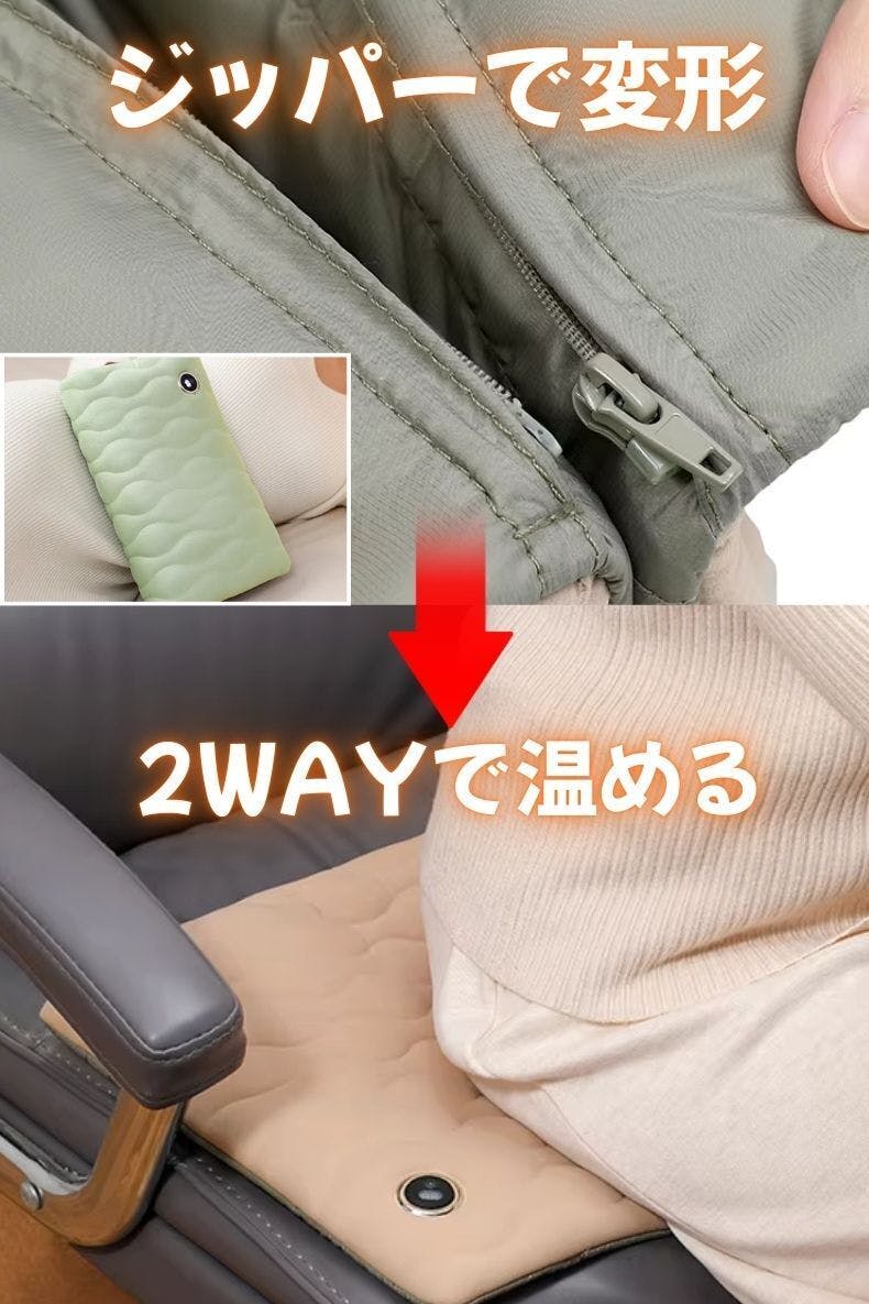 ジッパーを開いて広げれば、面で温められるパッド型ヒーターに早変わり。