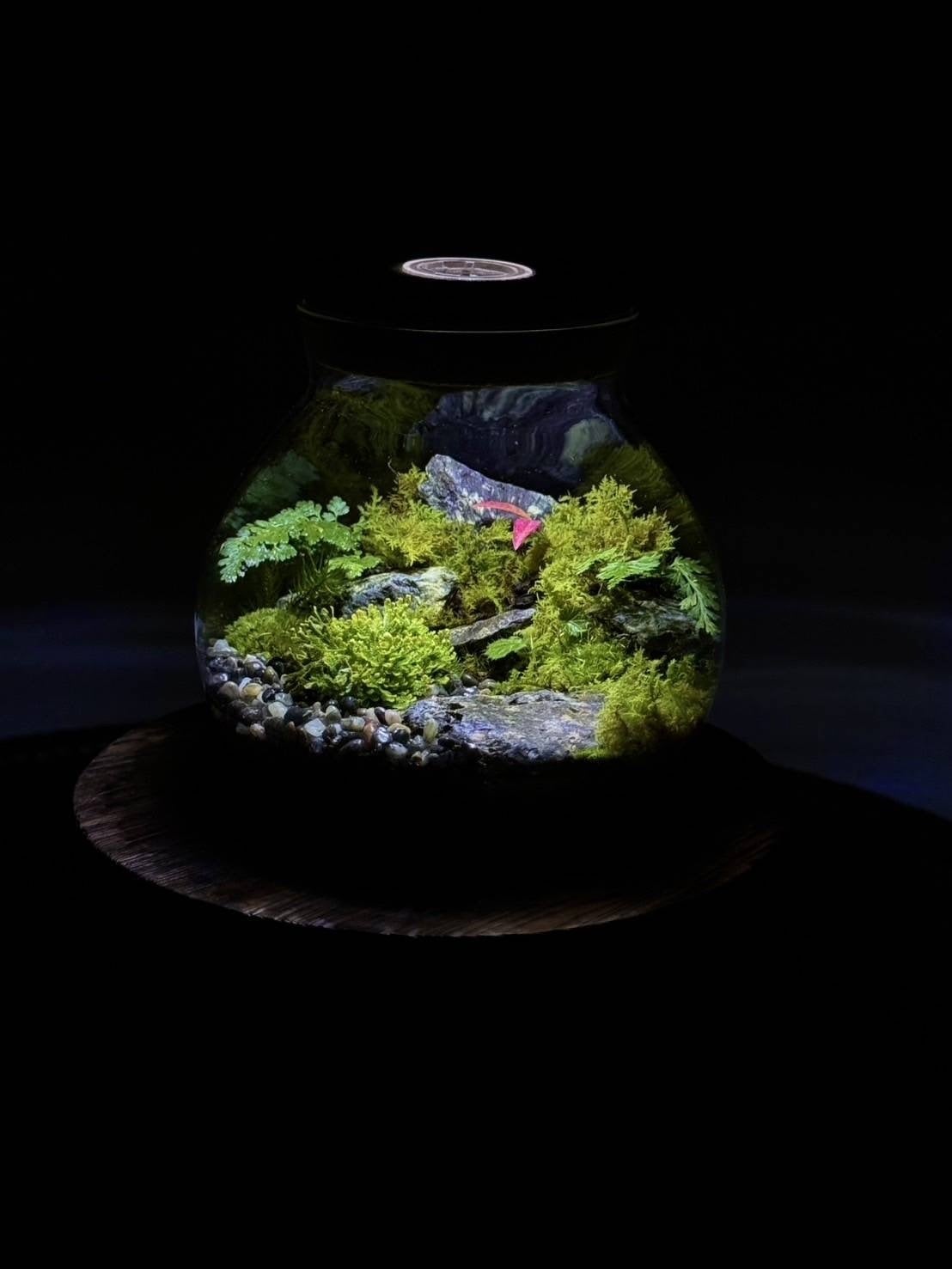 現在は、「時を灯す」という理念を掲げながら、グリーンアーティストの妹と共に苔テラリウムのオーダー製作、販売、メンテナンス、室内植栽の納品やメンテナンス等の仕事を請け負っています。