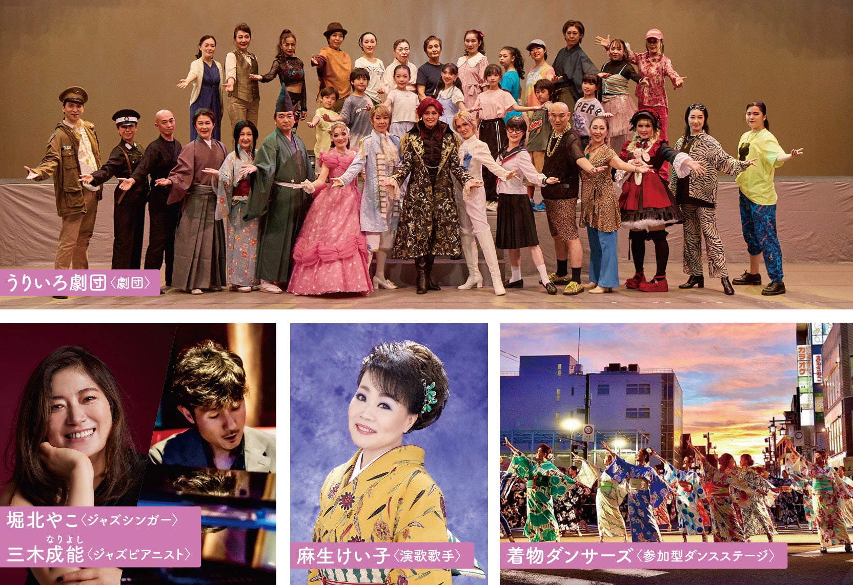 劇団、ジャズ、演歌、子ども向けの音楽ヒーローショー。バラエティ豊かな生の表現を気軽に楽しめます。