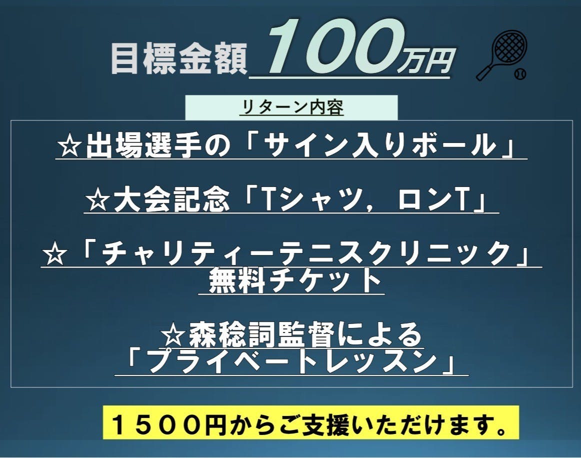 その第一歩として、若手選手や学生選手が世界へ挑戦するきっかけとなるITF World Tennis Tour ($15,000大会)を成功させたいと考えています。