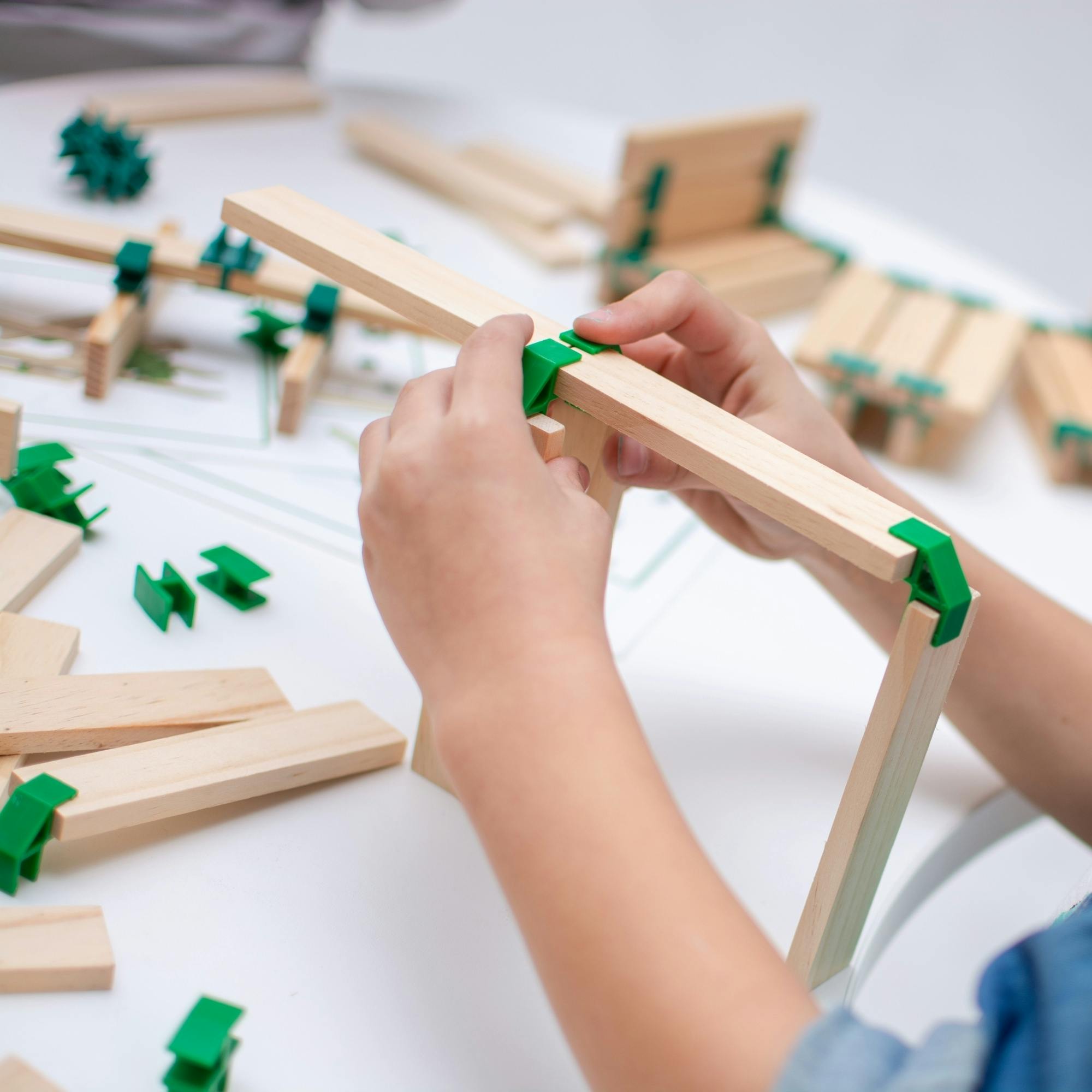 子どもたちは、シンプルなタワーから複雑なマーブルランまで、より大きく、強く、創造的な構造を作りながら、遊びを通じてSTEM(科学・技術・工学・数学)の原理を学べます。