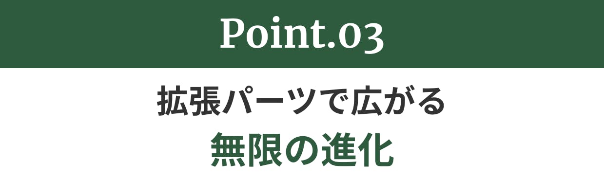 また、拡張パーツを加えれば、遊びの幅はさらに広がり、数年にわたって子どもの成長を支える“教育投資”に!