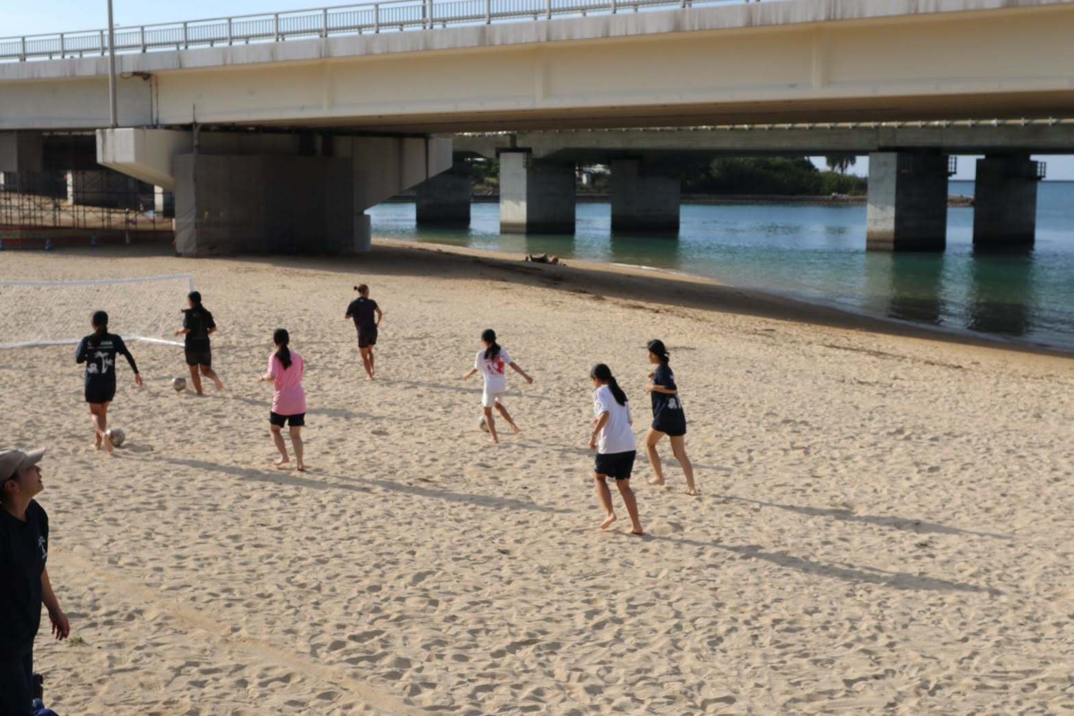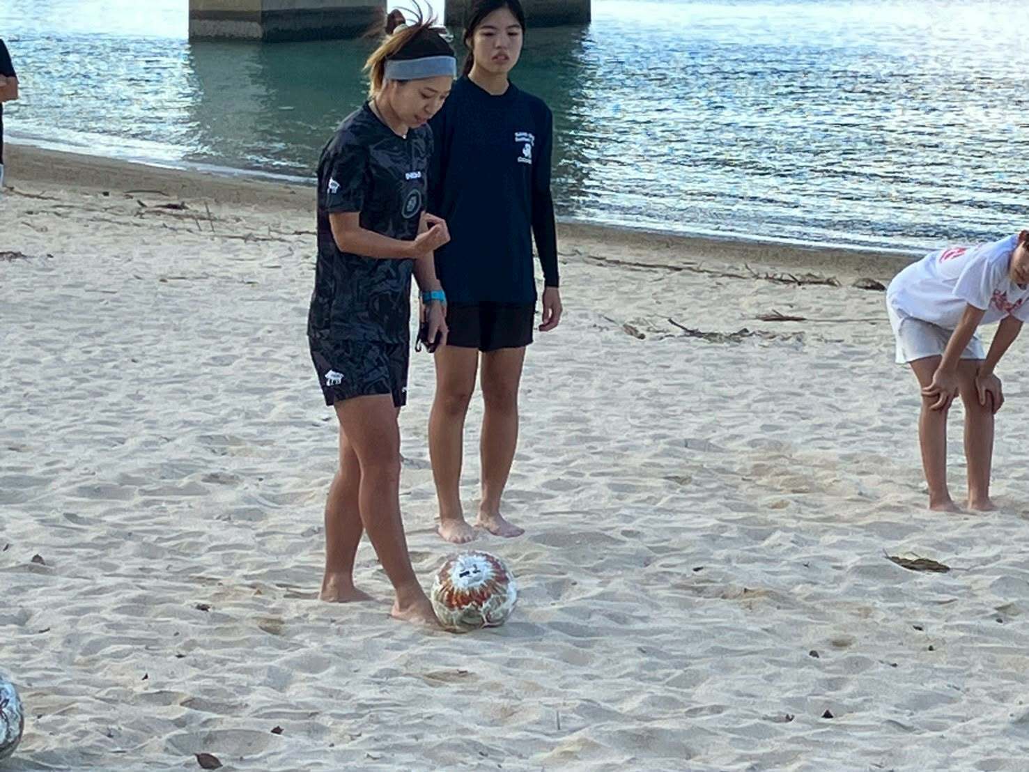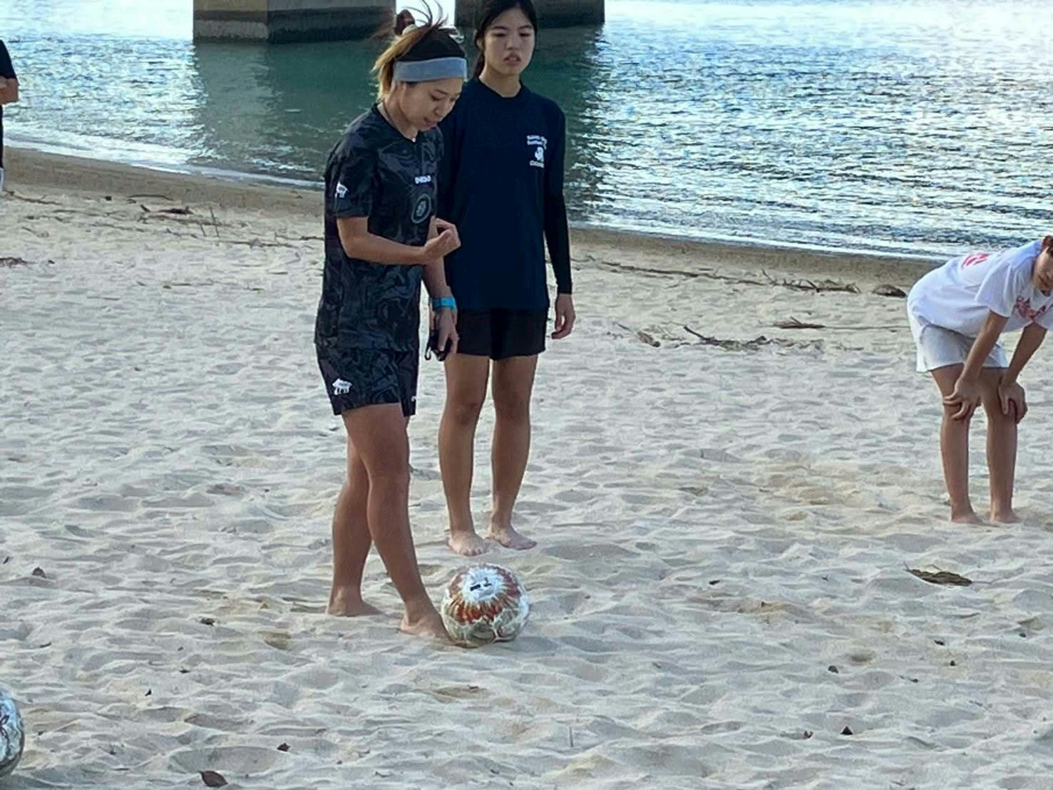 ビーチサッカー・牛玖真保選手によるビーチサッカークリニックでは、美しいロケーションのビーチでサッカーをしました。ビーチでボールを扱うことは想像以上に難しかったですが、みんなと心の底から笑って過ごすことができました。