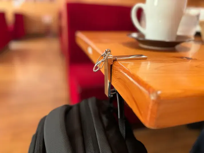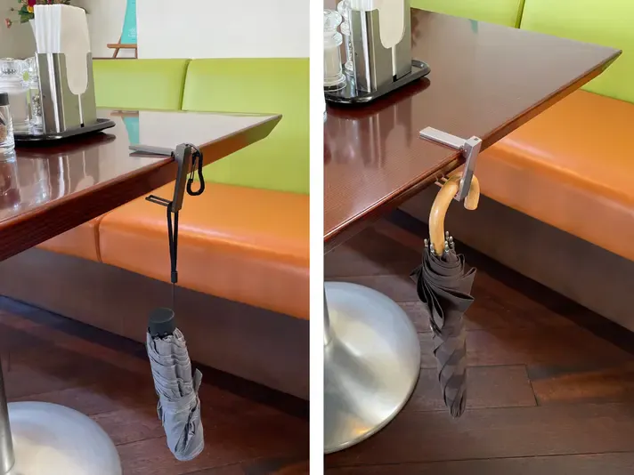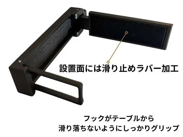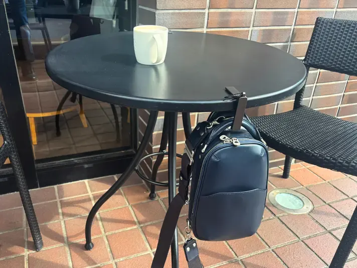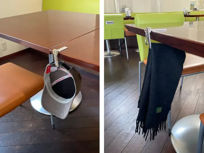 テーブルにバッグを掛けられます