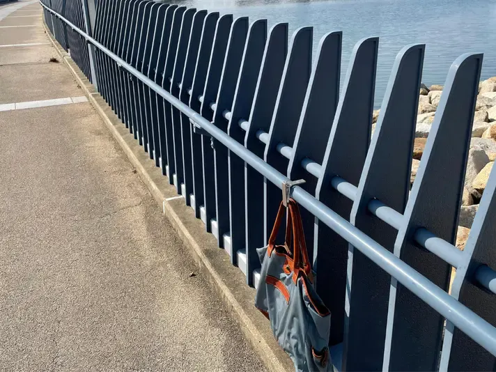 カラビナでフェンスなどに吊り下げられます