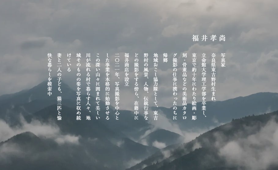 「東吉野の光」を知り尽くした、写真家|福井商店・福井孝尚さんの監修で設計しています。