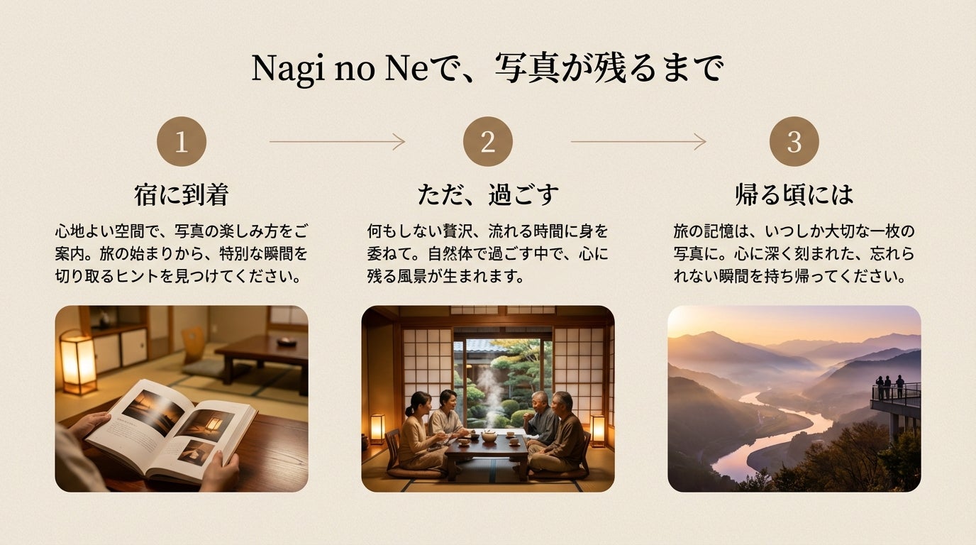 「Nagi no Ne」もまた、“つくる人”と“訪れる人”がやわらかく混ざり合う、そんなお宿に育てていきたいと思います。