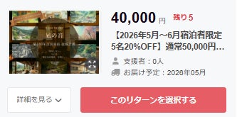 【先着5名】2026年5〜6月限定 20%OFFのリターン