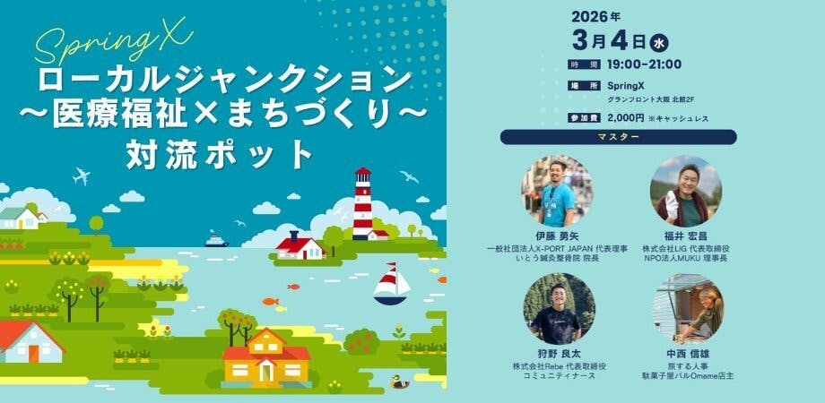 3/4、グランフロント大阪で開催されたローカルジャンクション「医療福祉 × まちづくり 対流ポット」にRebe東吉野 代表の狩野が登壇しました。