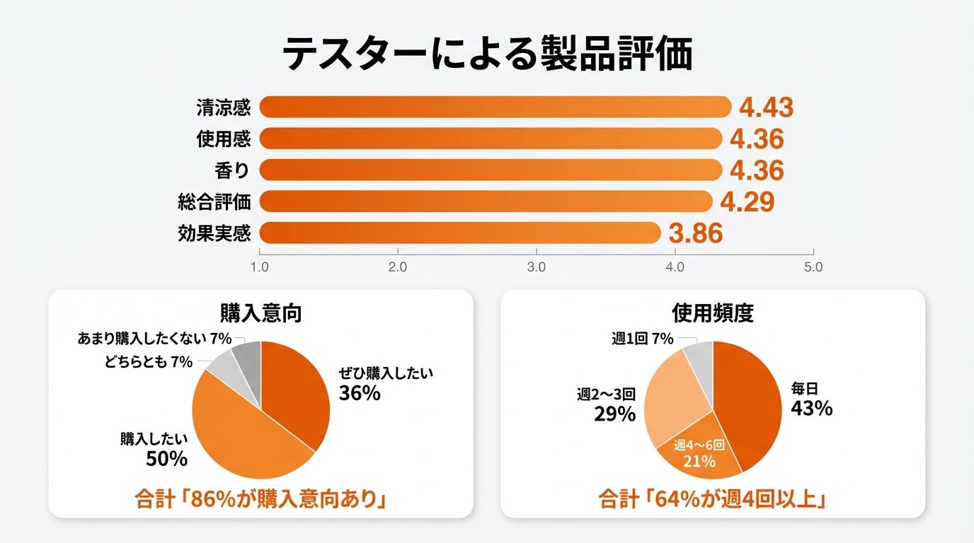 64%の方が週4回以上使ってくれたのも印象的でした。「1回試して終わり」ではなく、日常の習慣として使い続けてくれていた。