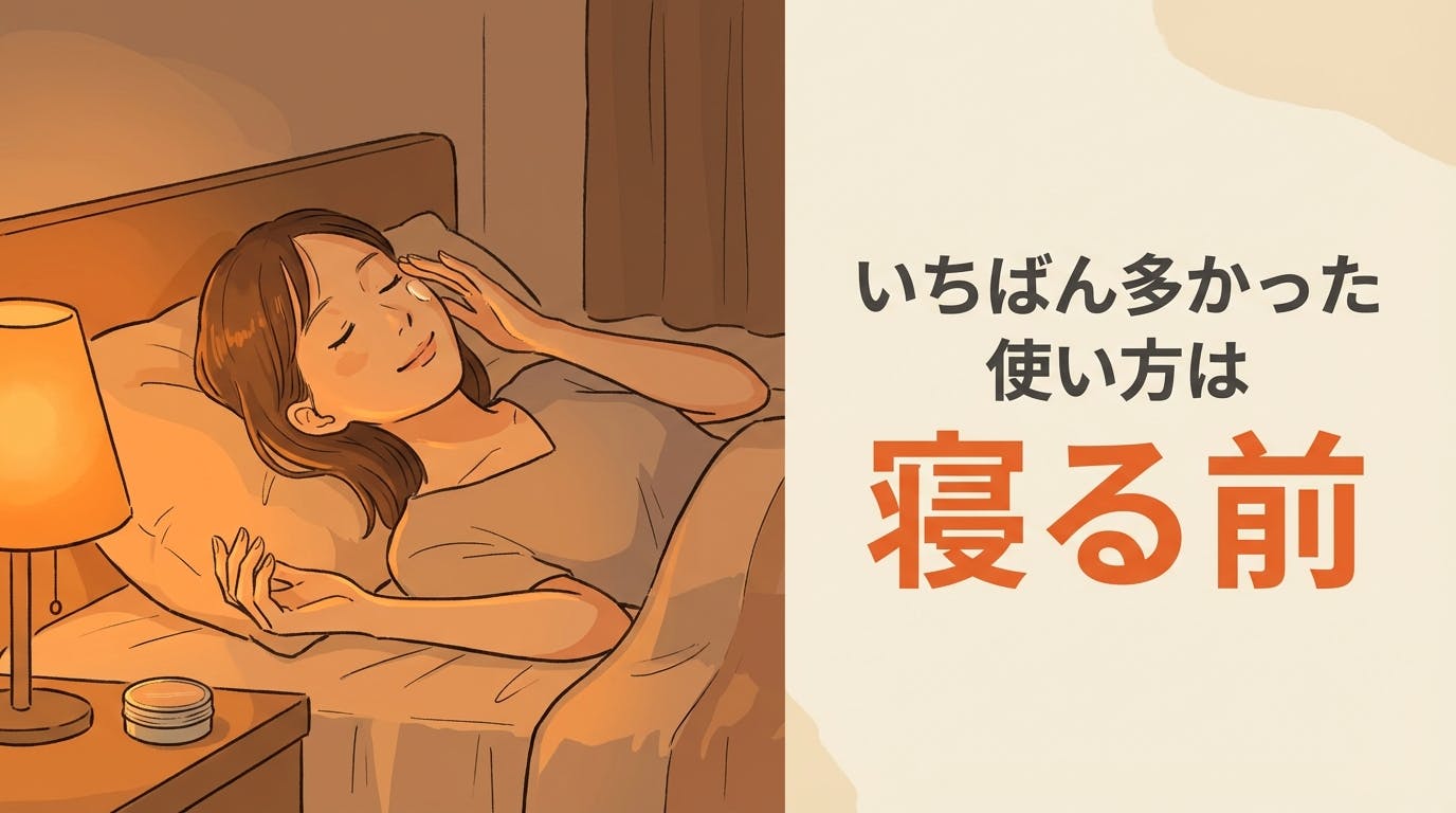 1日の終わりに、こめかみや目元にすーっと塗って、そのまま眠りにつく。翌朝、目元がすっきりしている——そんな使い方が最も多く挙がりました。
