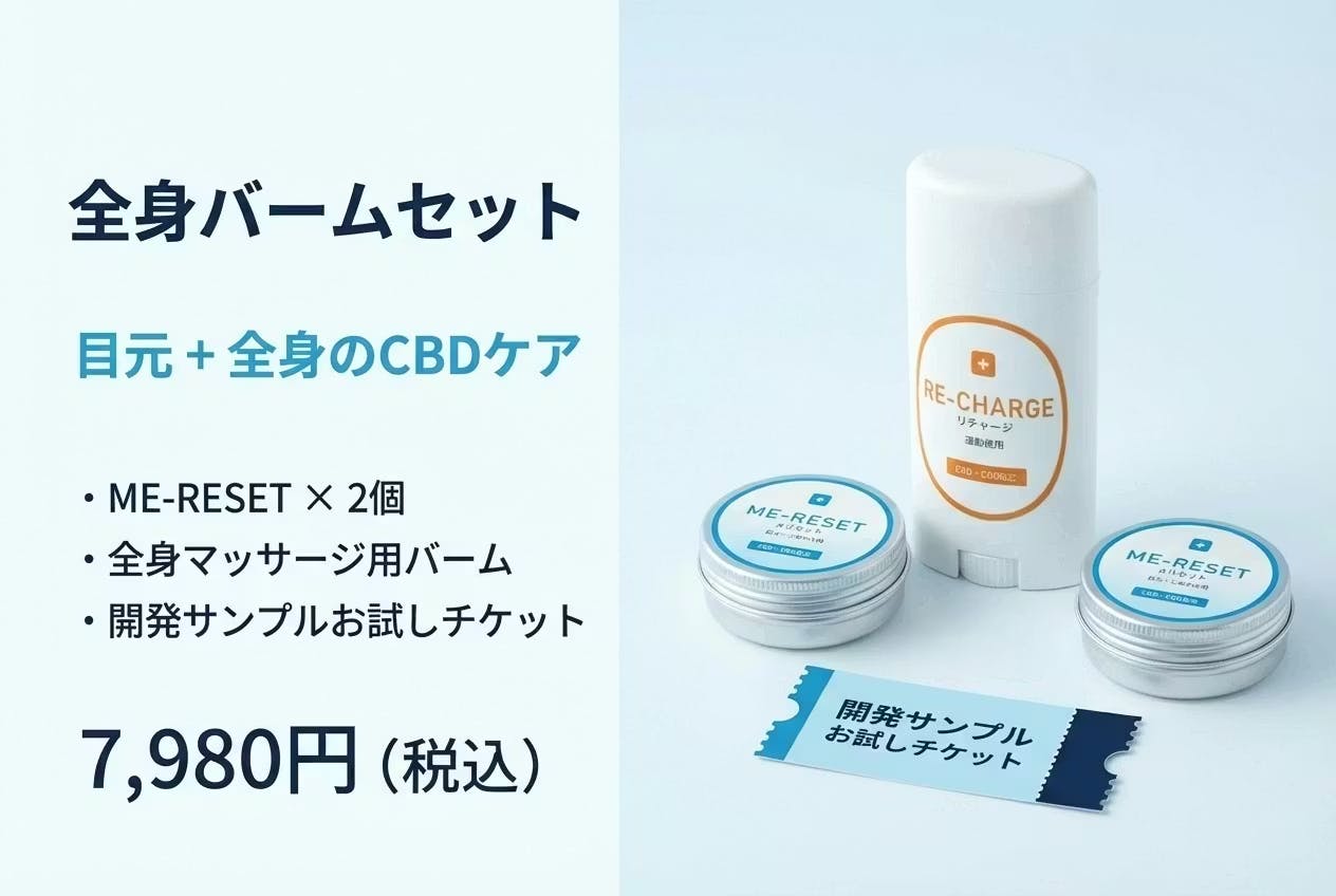 ラボで開発した全身マッサージ用バームとME-RESETを組み合わせた「全身バームセット(¥7,980)」が新しく登場!