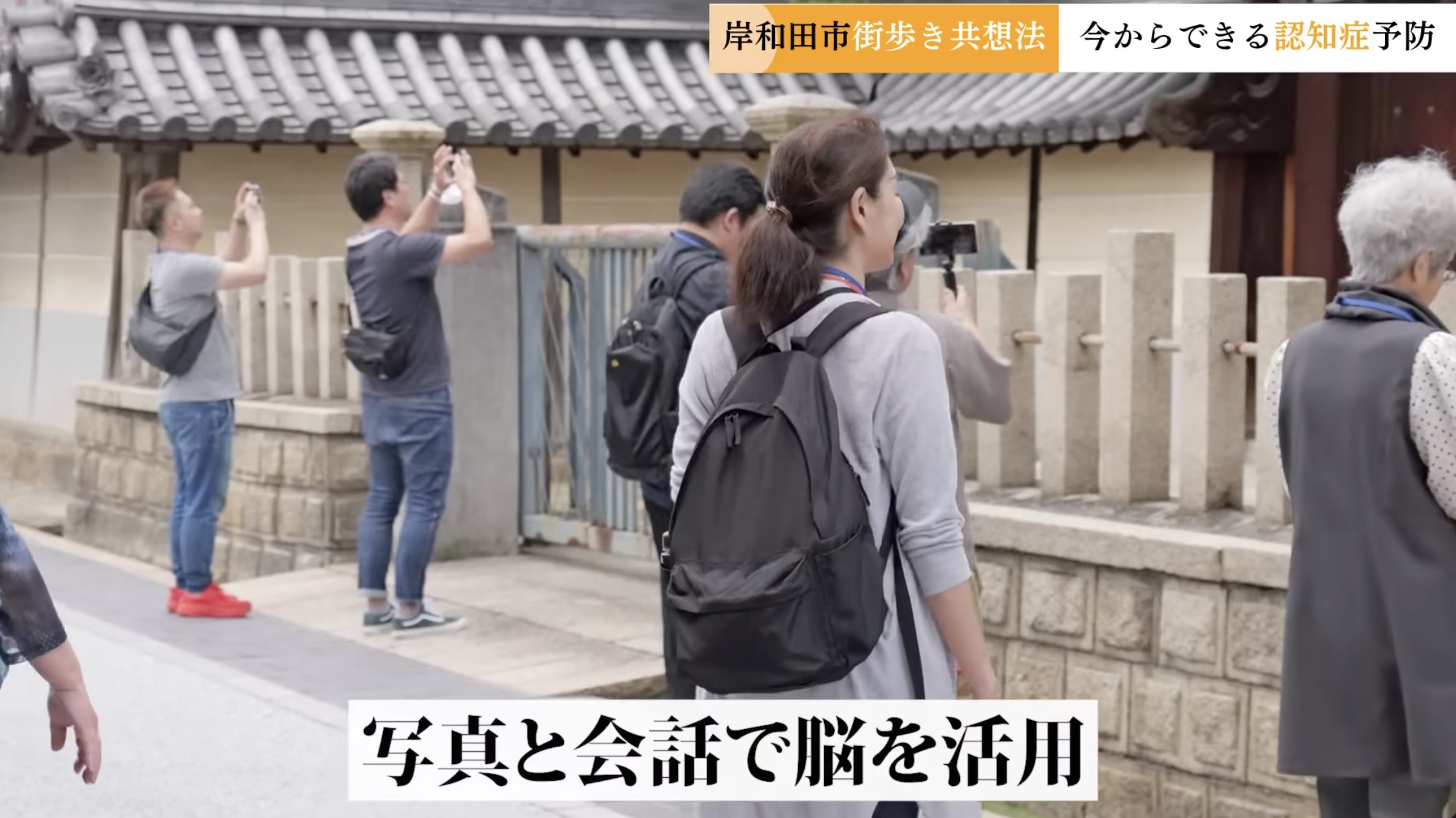 「街歩き共想法」は、運動と会話を1日にまとめて認知症予防活動が出来る相乗効果プログラムです。