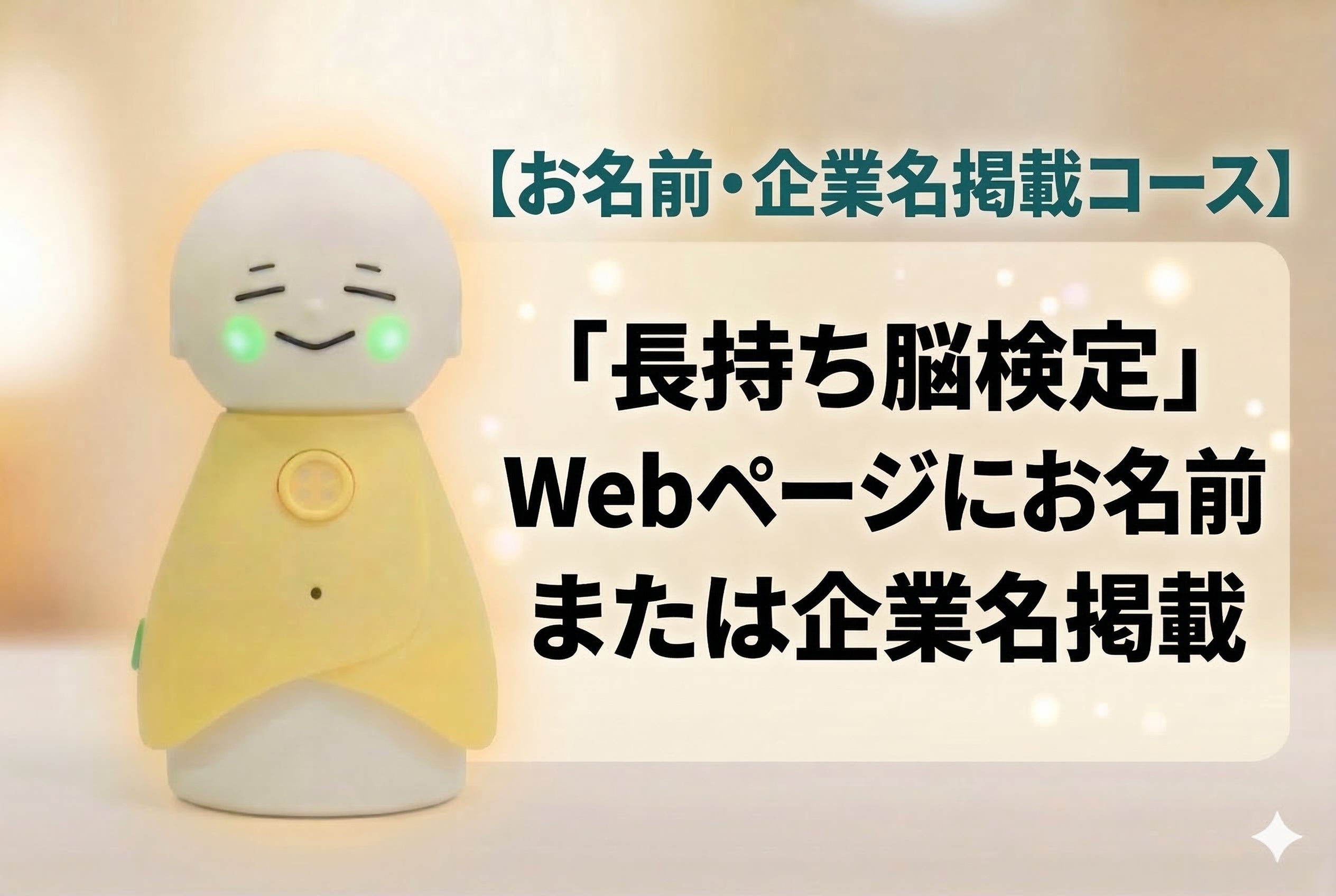 「長持ち脳検定」Webページにお名前または企業名をテキストのみで掲載させていただくコースになります。