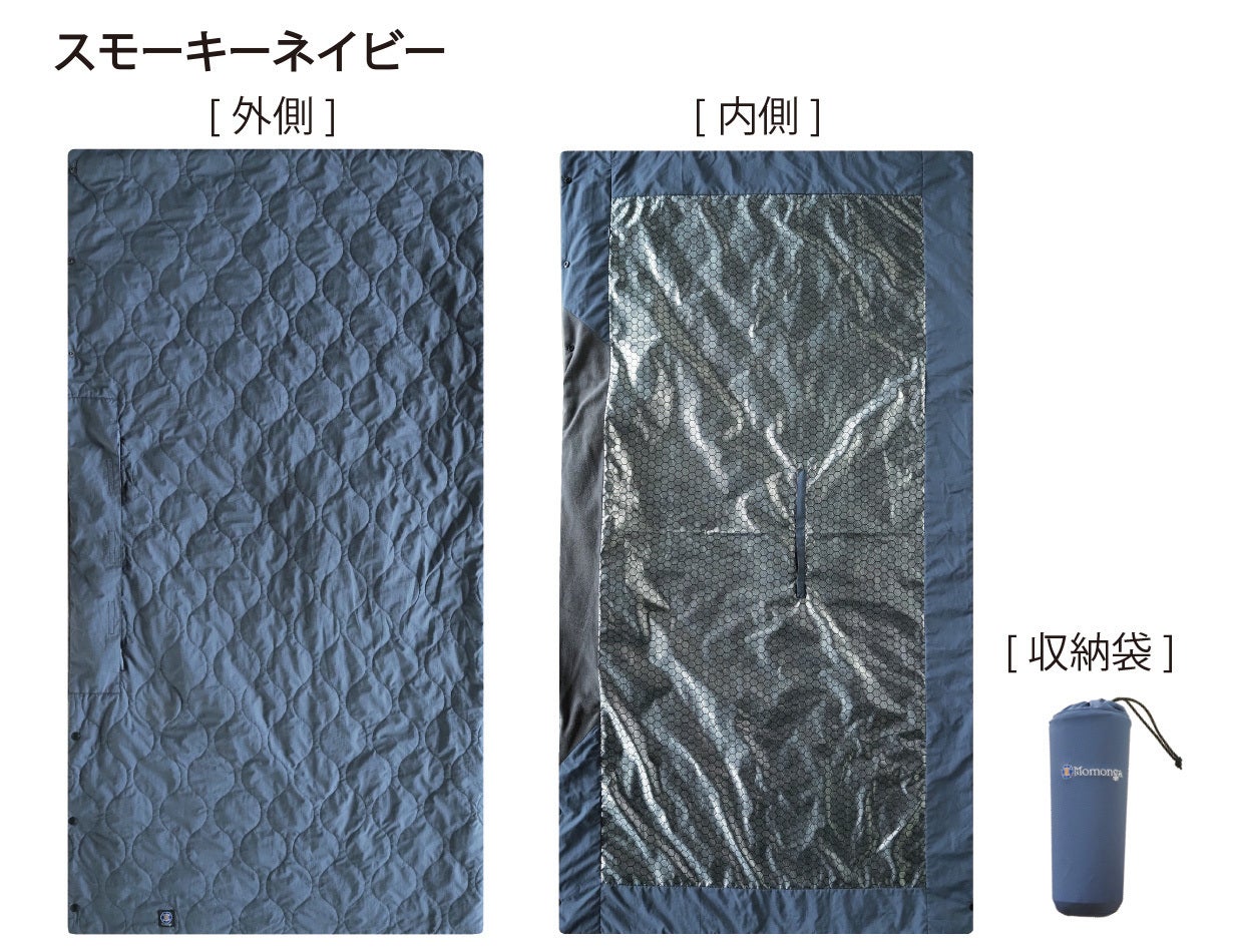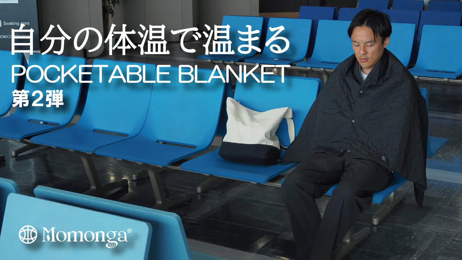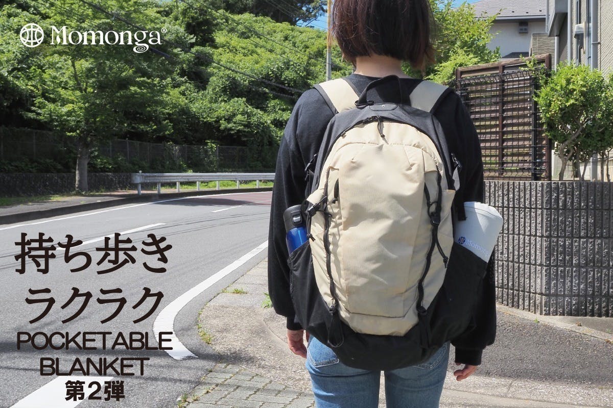 ポケッタブルブランケットにはスタンダードモモンガの約1/3の厚さのサーモライト中綿を使用しているので、コンパクトに持ち歩くことができます。