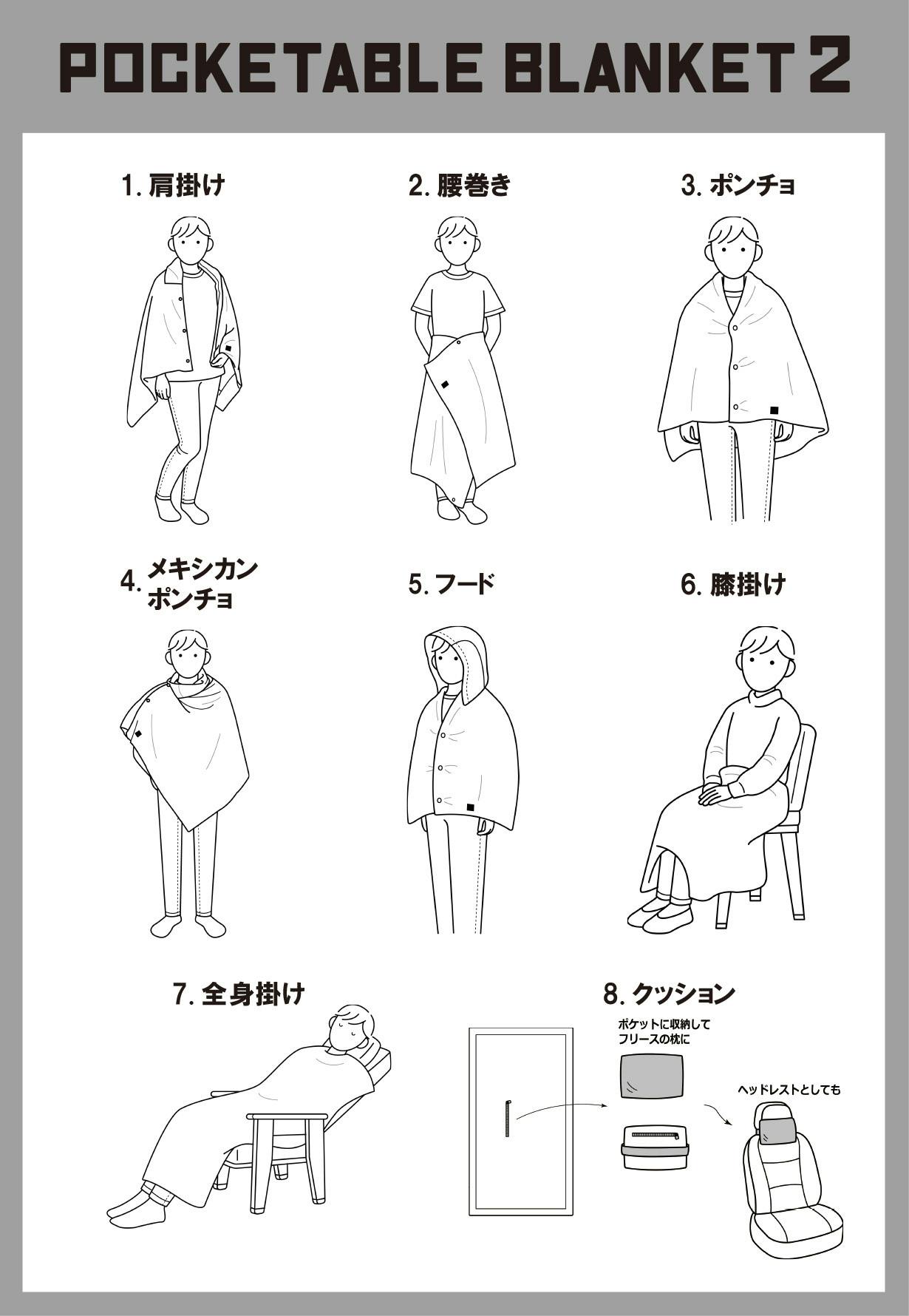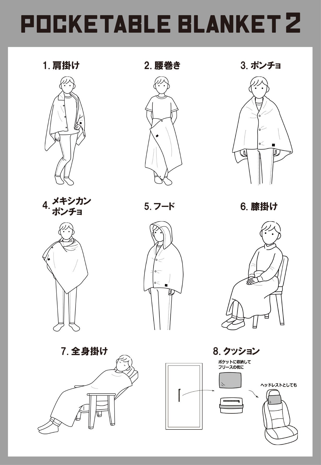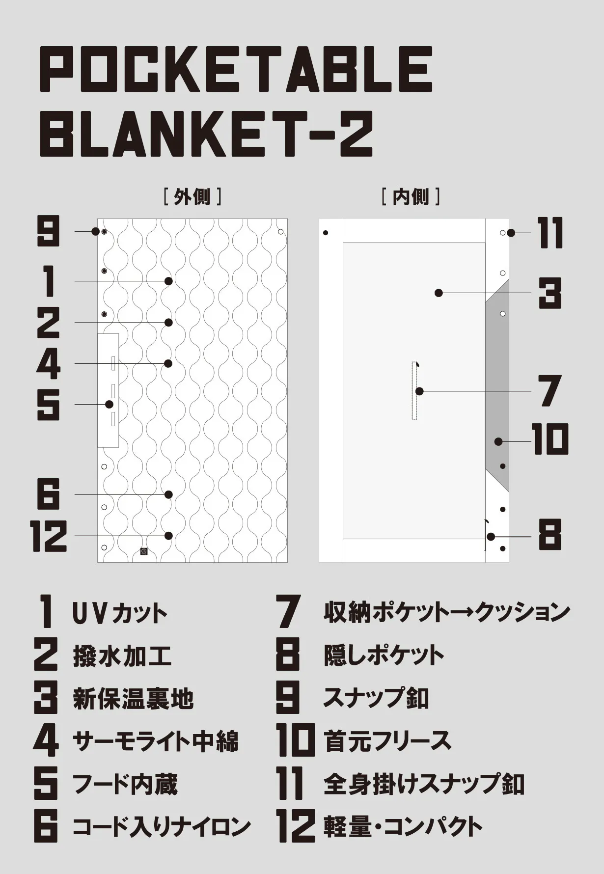 ポケッタブルブランケットにはスタンダードモモンガの約1/3の厚さのサーモライト中綿を使用しているので、コンパクトに持ち歩くことができます。