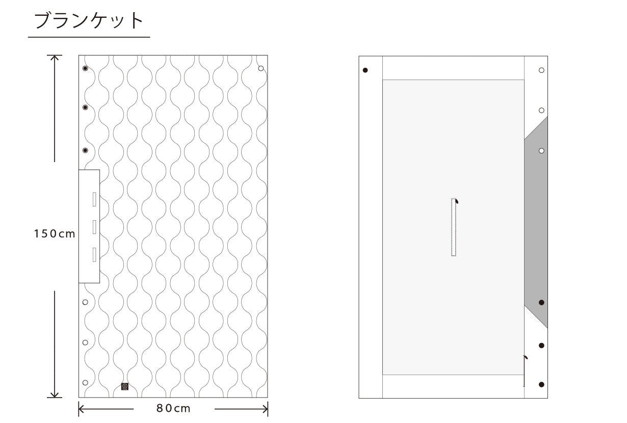 端のスナップ釦を留めて、ブランケットを縦に使うことで全身に掛けてお休みになれます。