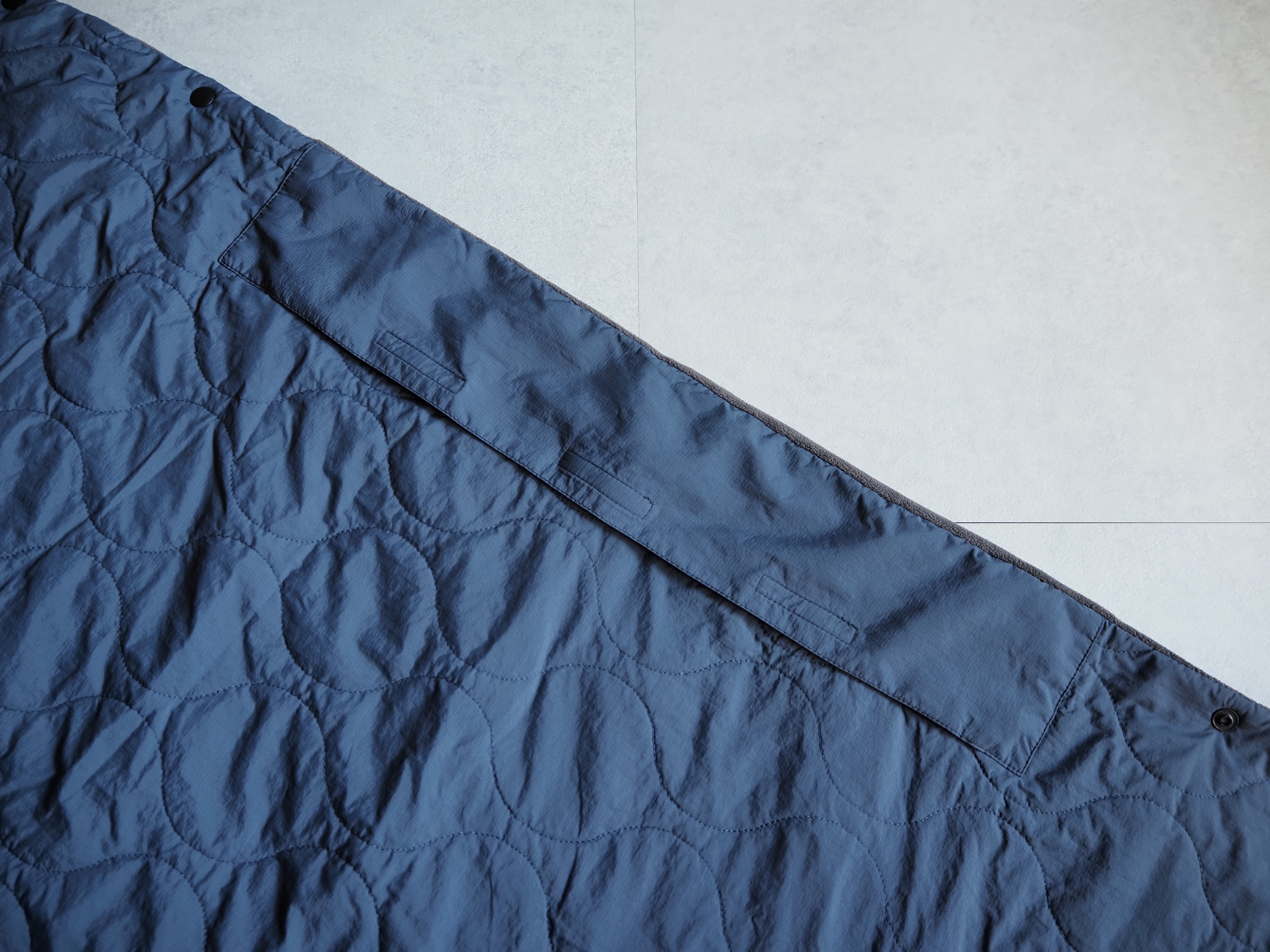また、ミリタリーアイテムでよく使われるひょうたん型キルトステッチが施されているので、洗濯しても中綿が片寄らず均等な暖かさを保ちます。