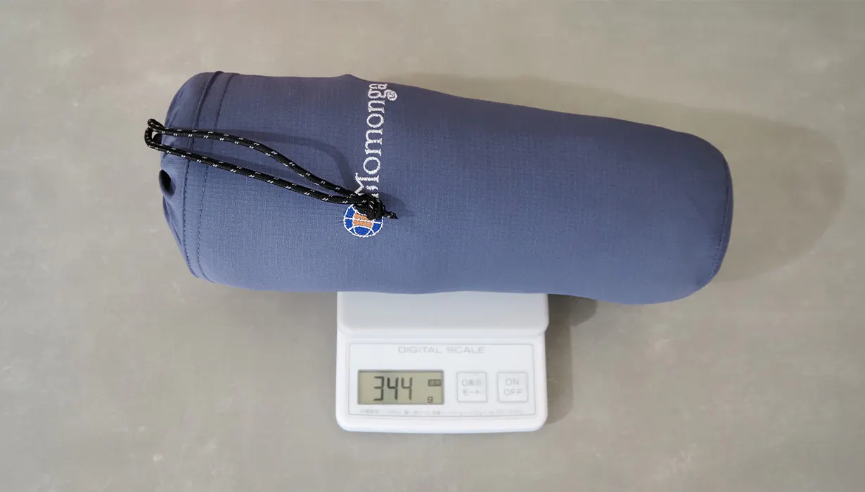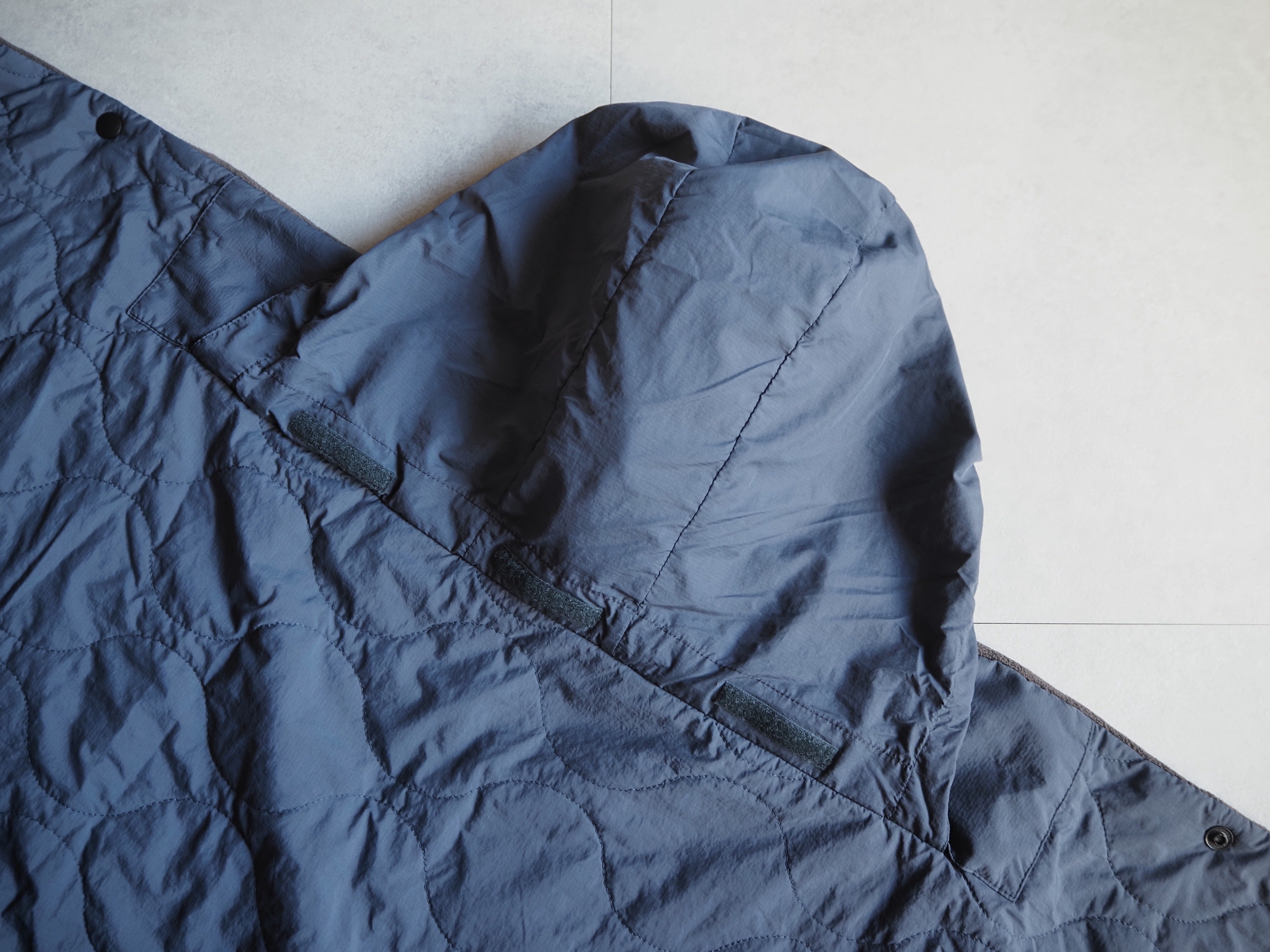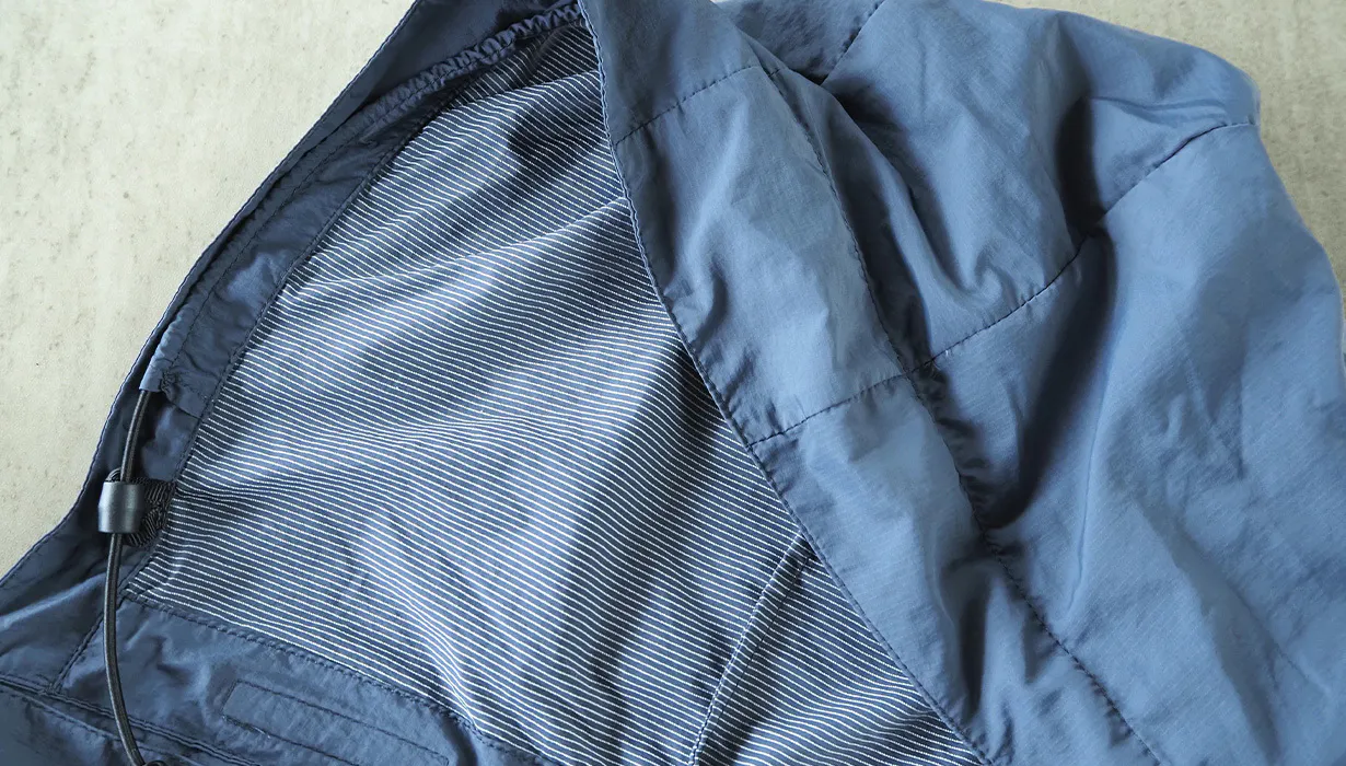 第2弾ではフードを追加しましたが、表と裏の素材を見直したことで約350gと第一弾より約20g軽量化しました。持っていることを忘れるくらいです。