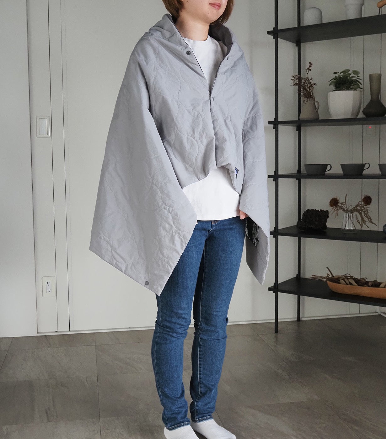 薄手のダウンジャケットでコンパクトになるものもありますが、季節によっては少し大袈裟に思えたり、着ても足元は寒かったりします。