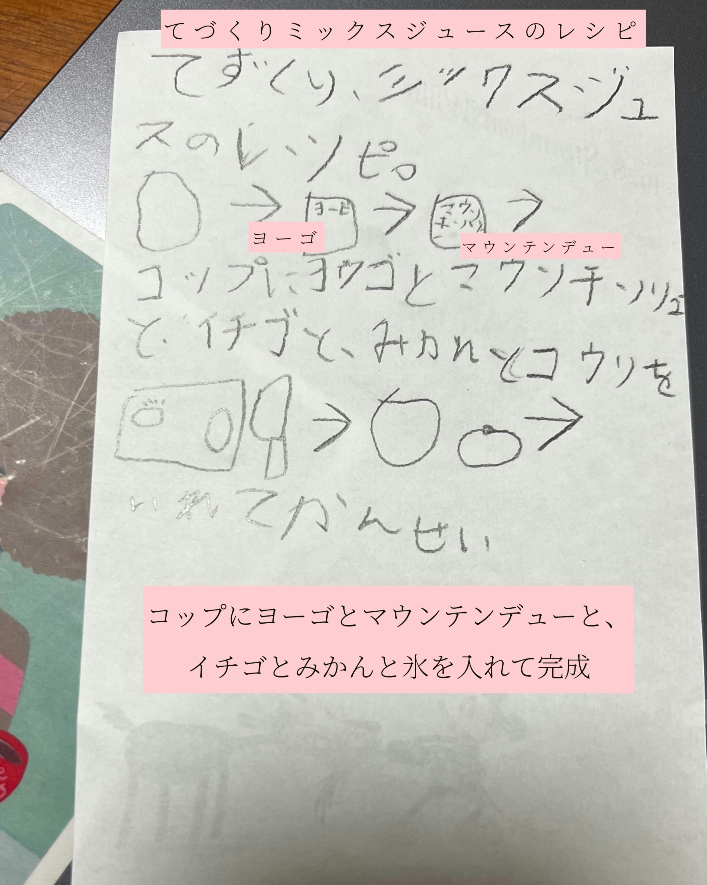 次のKitchenでのドリンクメニューを考えたから出してねとスペシャルミックスジュースだそうです。