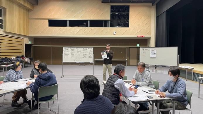 (今年1月に豊岡市民プラザで催された「但馬コミュニティ共創会議」で、頑張ってクラファンをPRする深田氏)