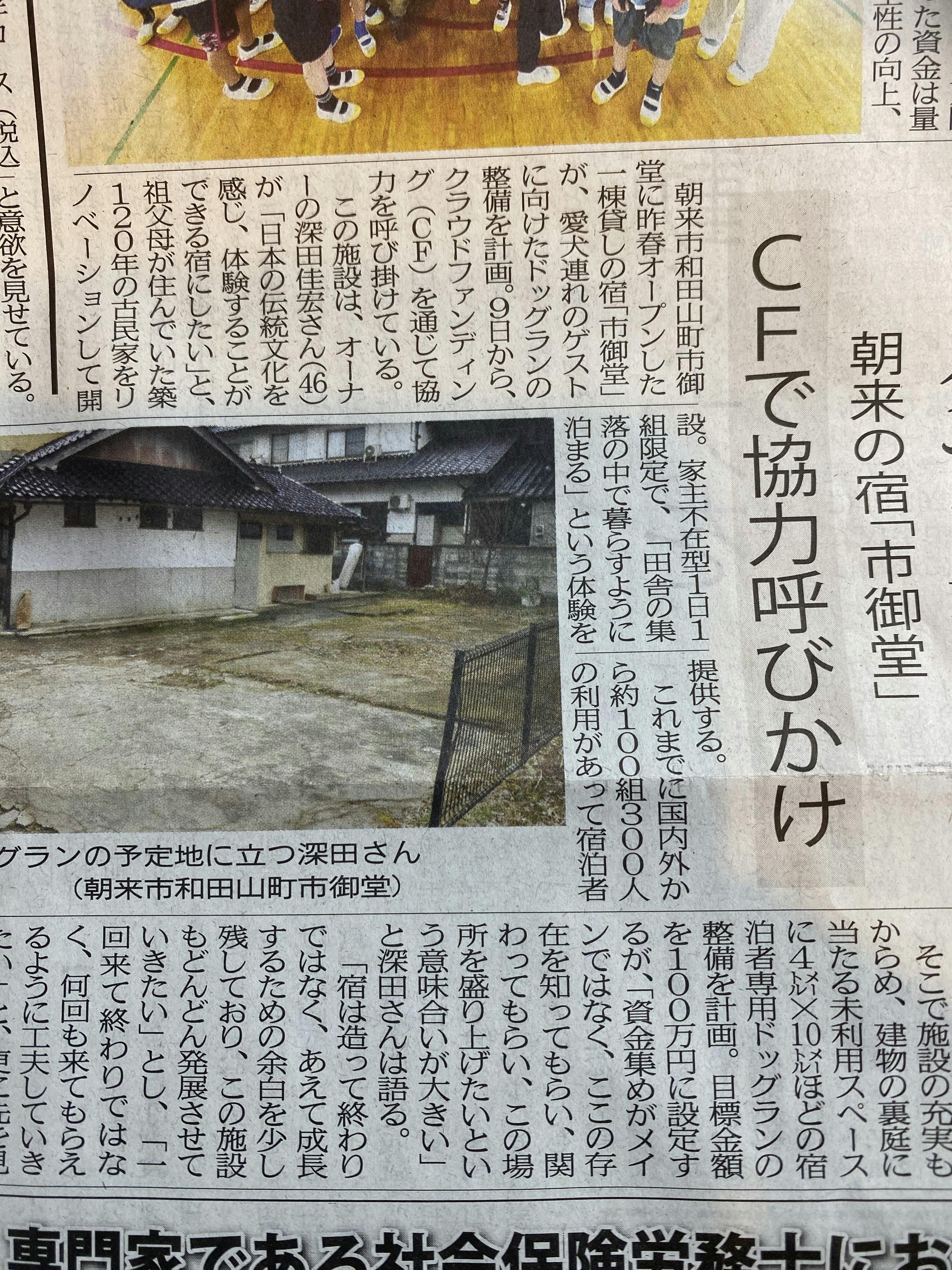 深田佳宏さん、この度は「一棟貸宿 市御堂(いちみどう)」のプロジェクト始動、誠におめでとうございます。