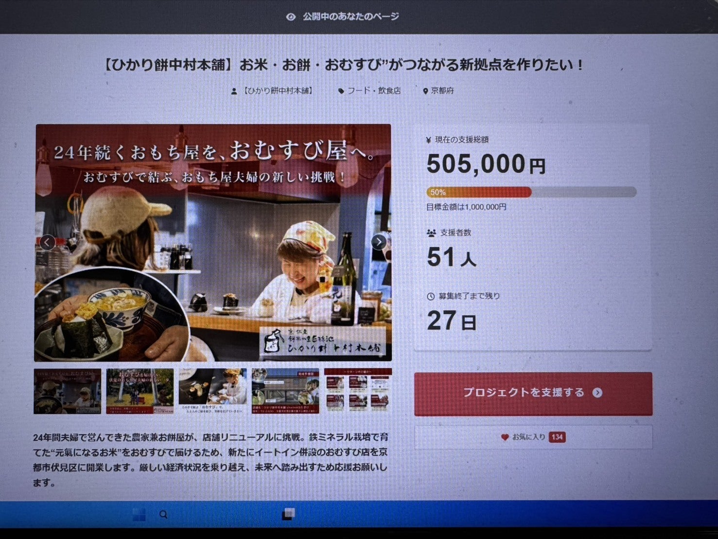 現在! 支援総額505, 000円 達成率50%となりました‼