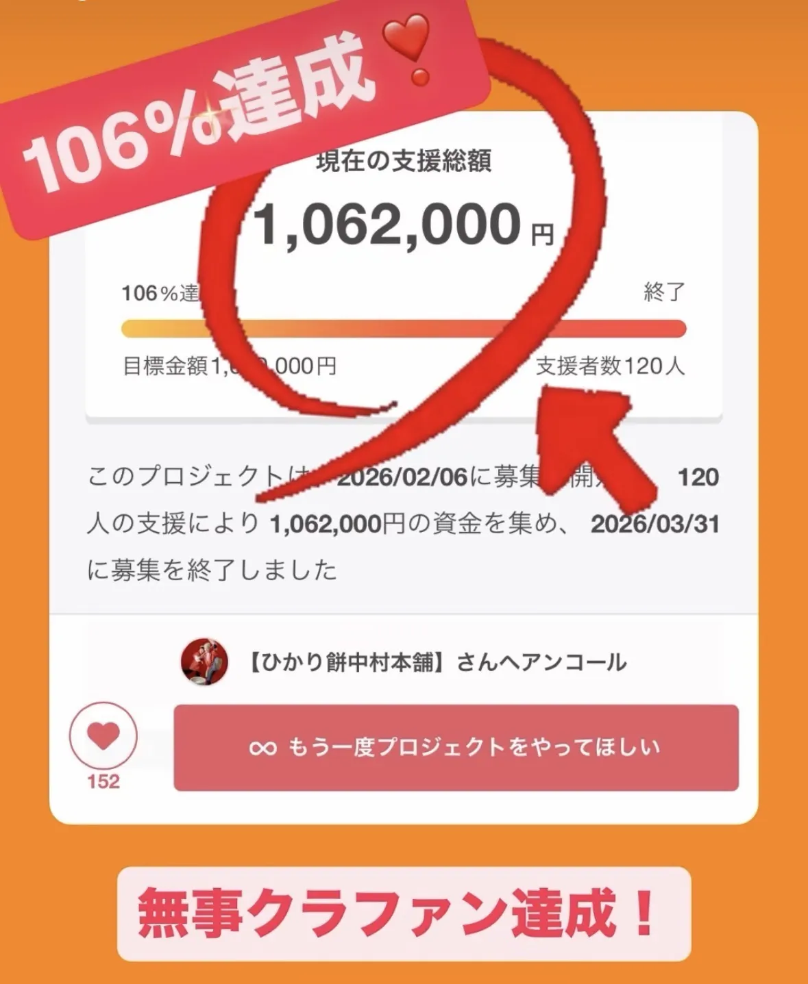 お陰様で、今回 120名もの方にご支援いただき、