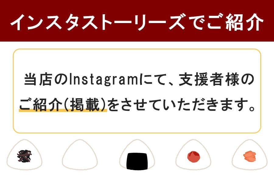 当店のInstagramストーリーズにて、支援者様のご紹介(掲載)をさせていただきます!