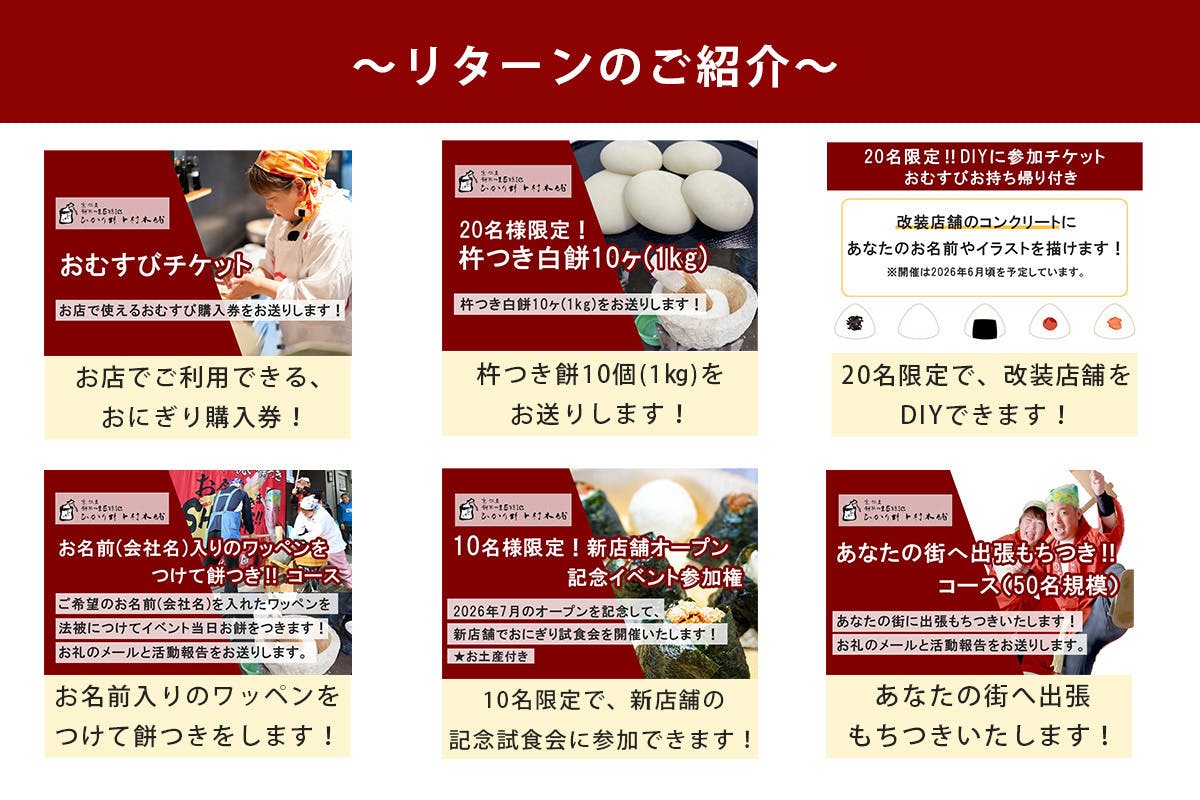 皆様、ぜひともご賛同ください。おむすびから、「味わい」と「元気」がもらえる。きっとそんな店舗となるでしょう。