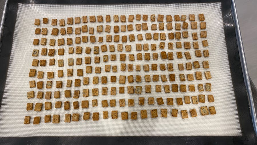 パン作りでは当たり前のように見極めてきた水分・焼き加減・温度。そのすべてを「犬のため」にゼロから調整していきました。