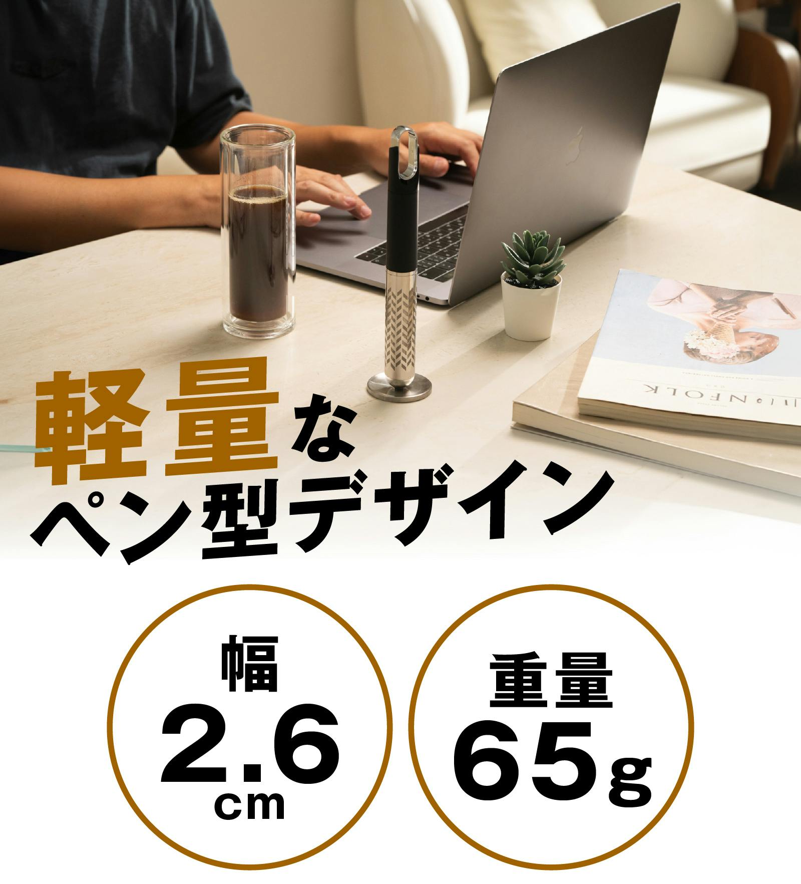 ☑️【2.6cmの隙間に入るポケットサイズ】スペース不要、持ち運びに便利なペン型直立デザイン