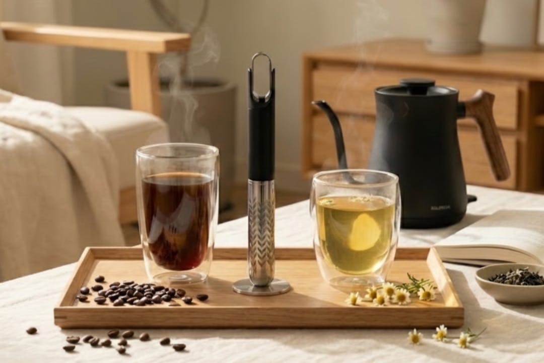 そうは思っていても、わざわざコーヒー粉や茶葉、お湯を計量するのはちょっと面倒ですよね。